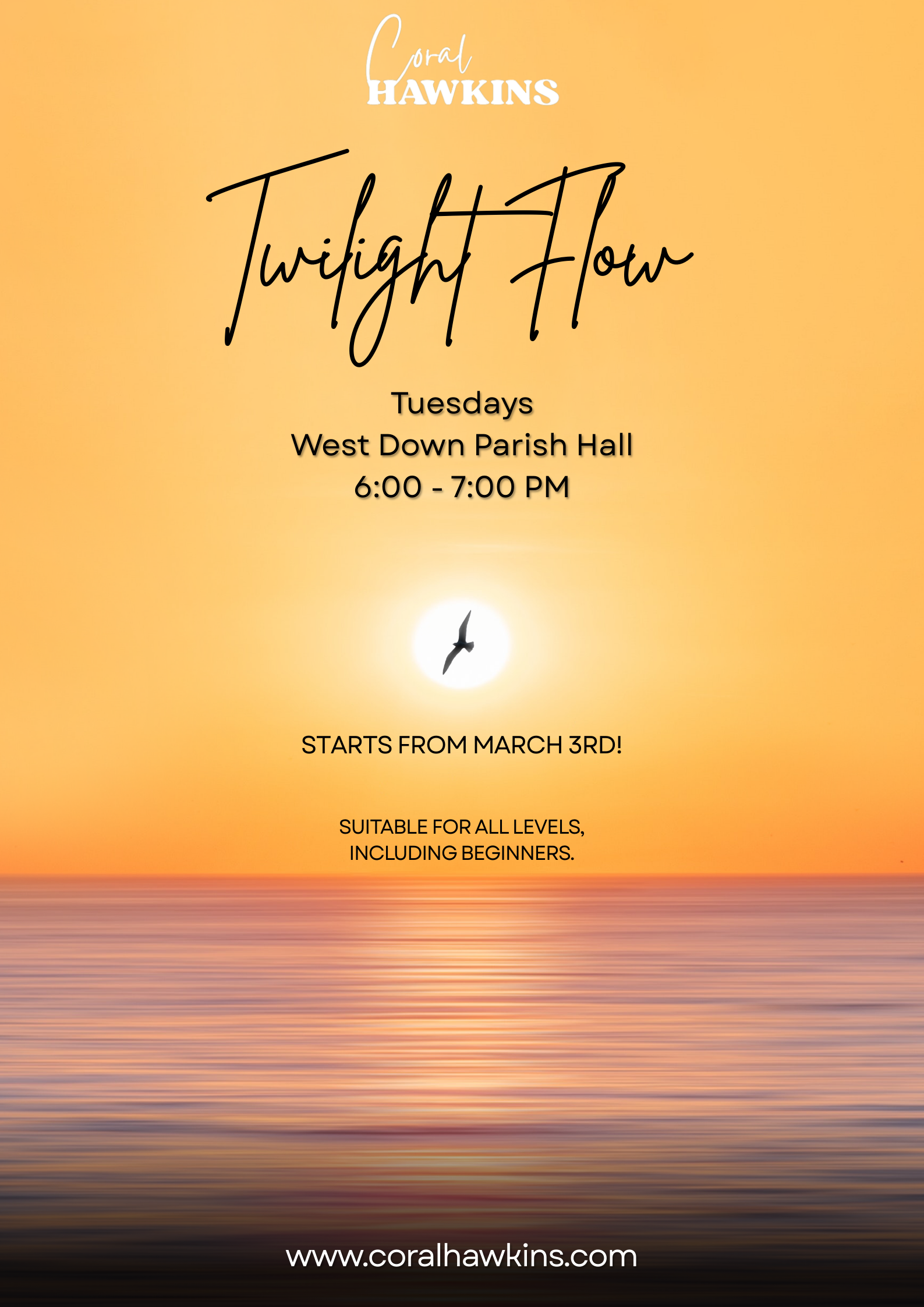 Twilight yoga flow is a calming, all levels practice designed to ease tension from the body, quiet the mind and support a smooth transition from the busyness of the day into a more restful evening using the breath to flow with movement.